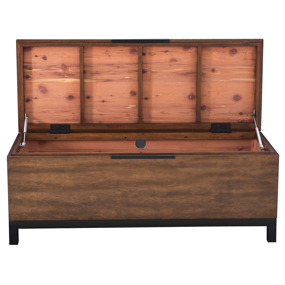 - Des vérins à gaz à amortissement progressif soutiennent le couvercle lors de la fermeture.