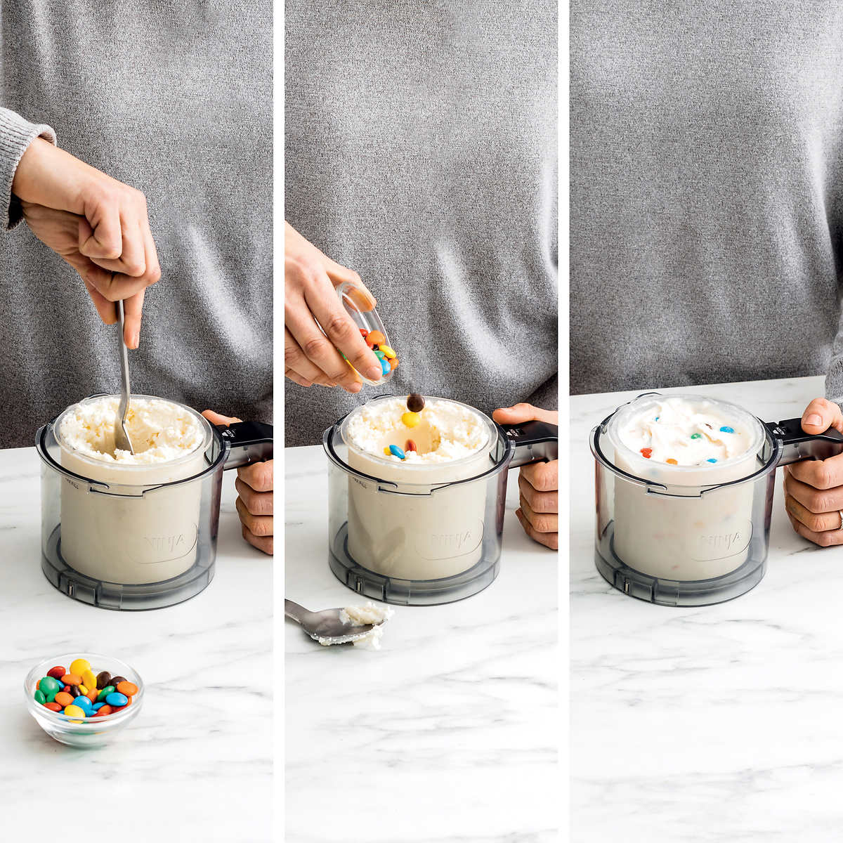 • Mélangez votre chocolat, noix, bonbons, fruits préférés et bien plus encore pour personnaliser n'importe quelle gâterie CREAMi™
