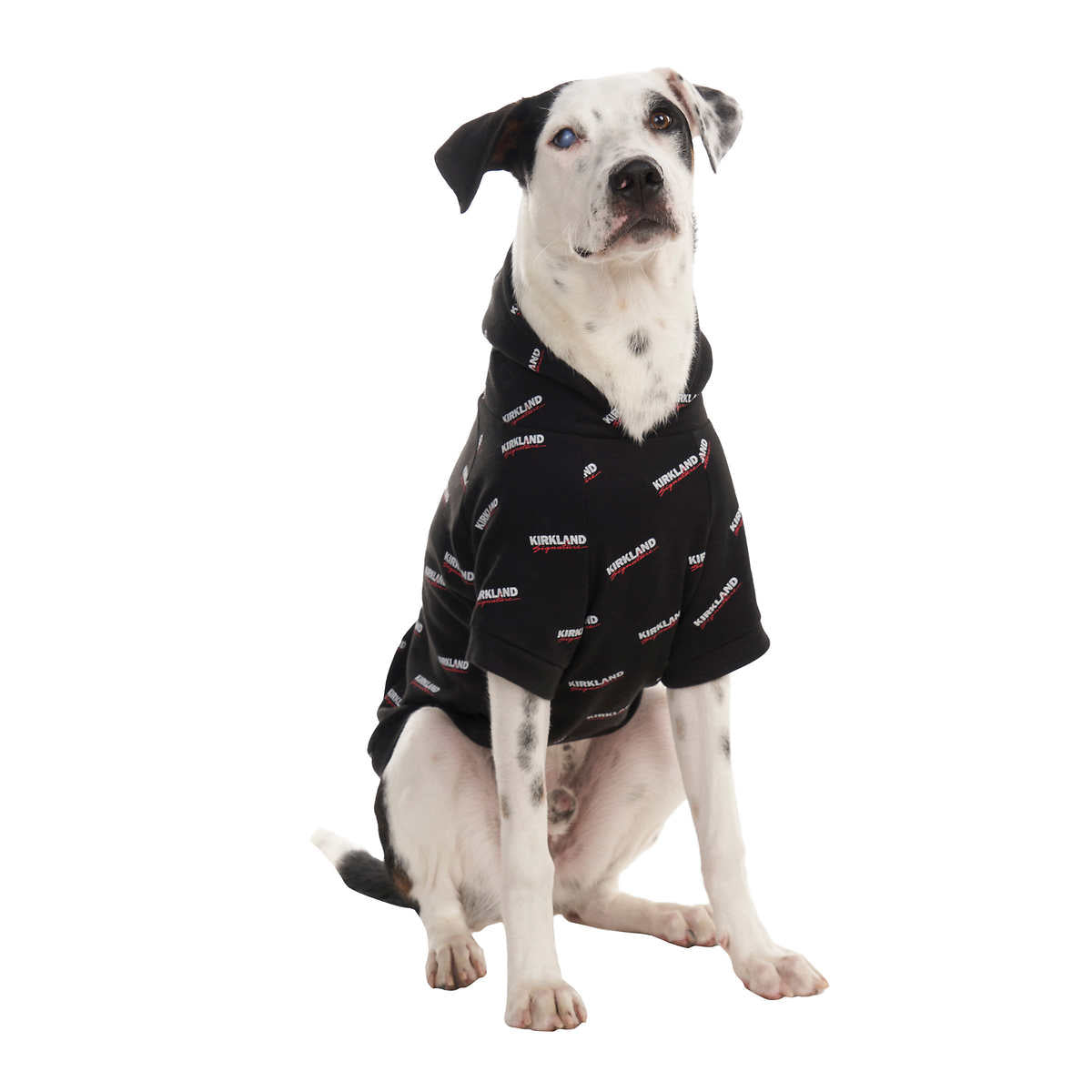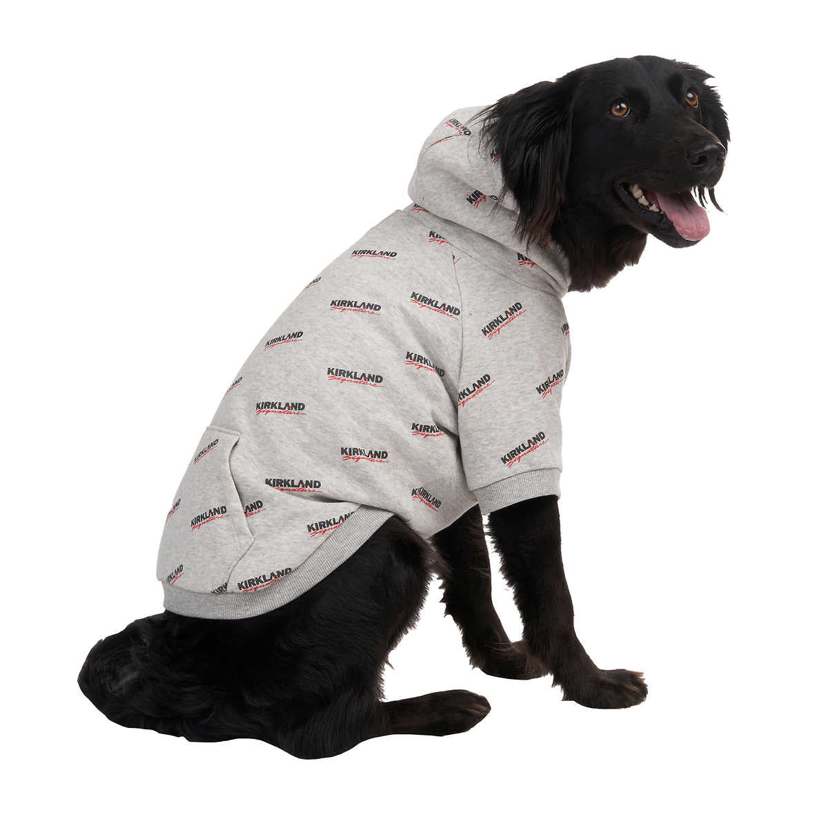 Le chandail à capuche Kirkland Signature Pet a un tissu en coton/polyester super doux et un style pull qui le rend facile à enfiler sur votre animal de compagnie.