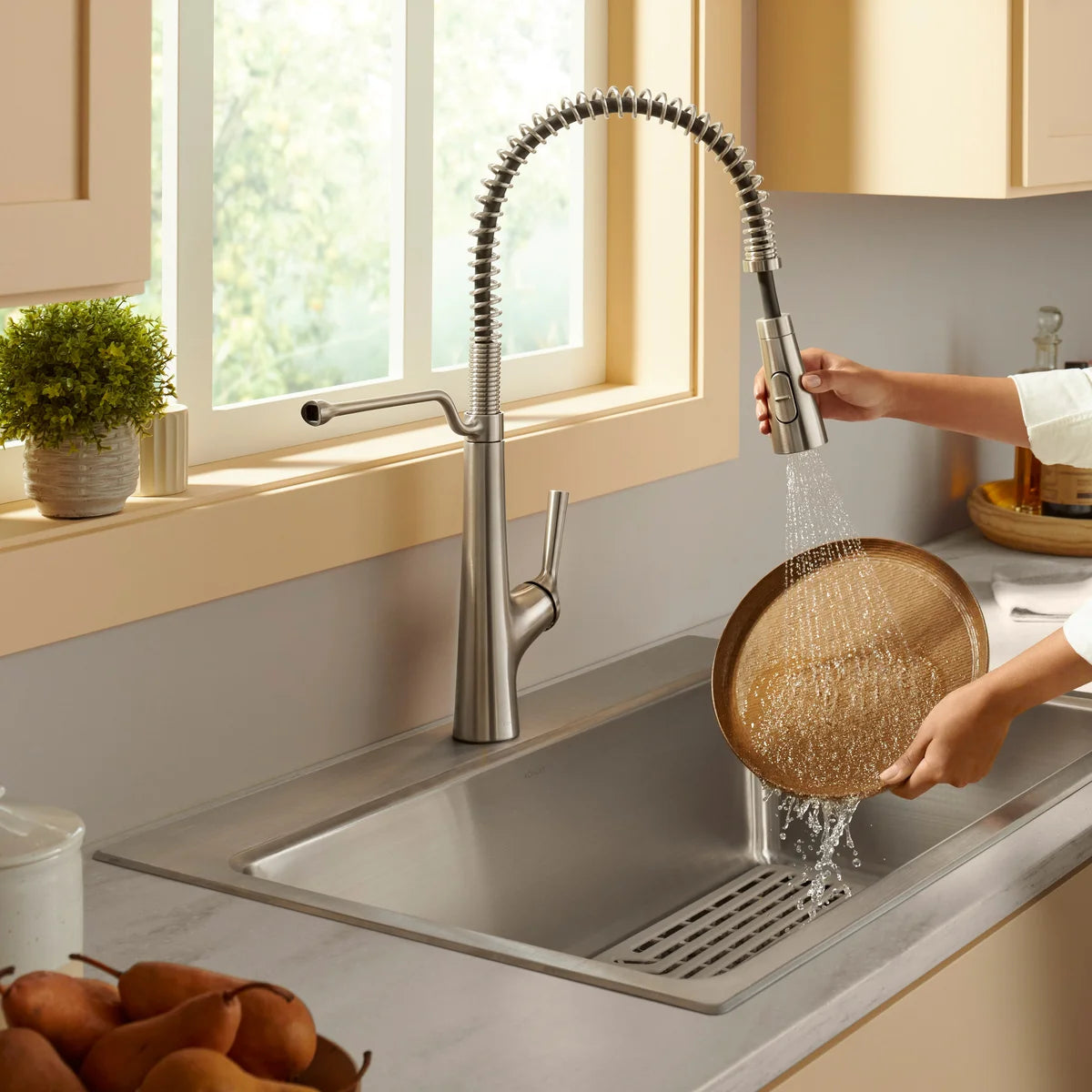 - Robinet de style professionnel avec un tuyau facile à nettoyer et un serpentin amovible.