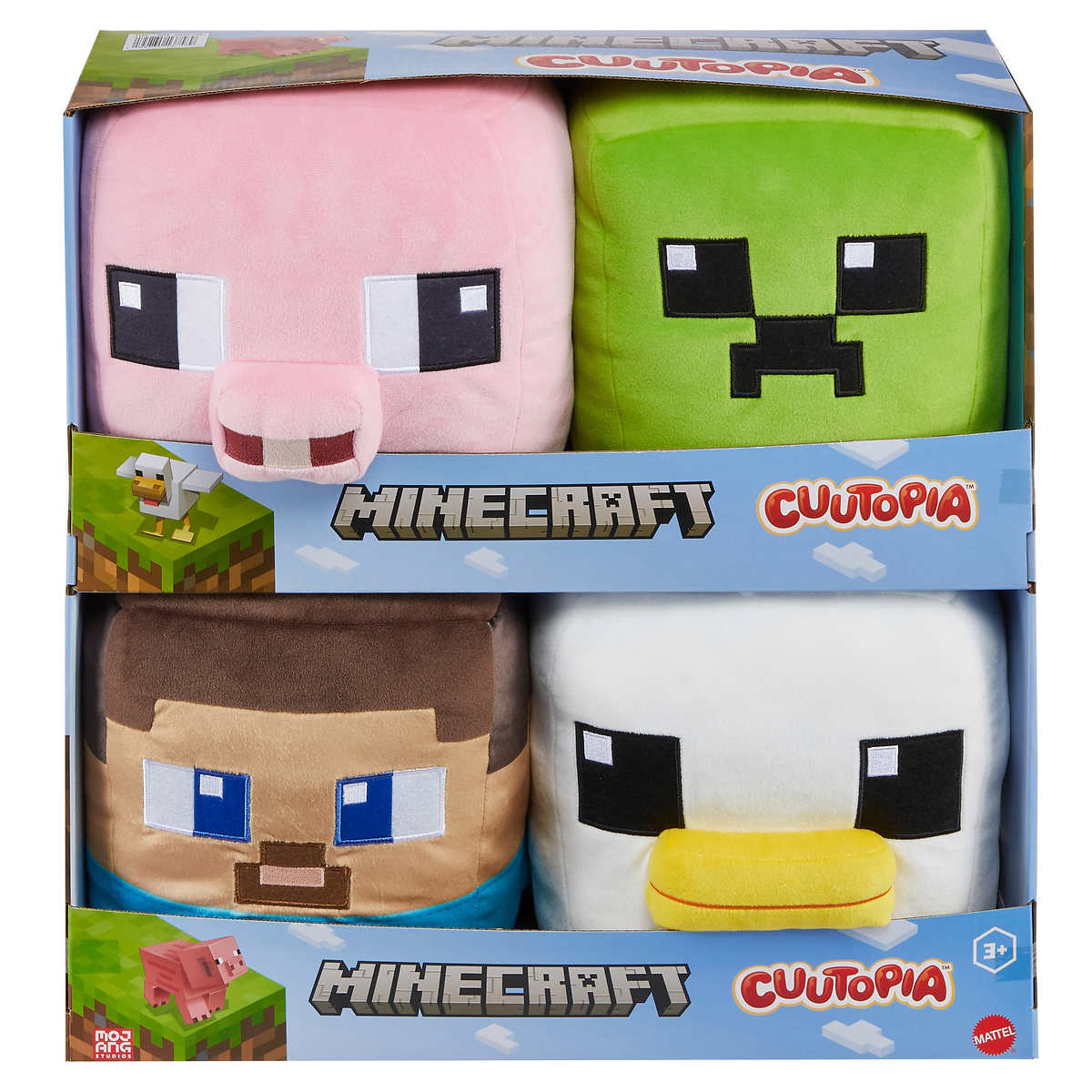 • Le coffret comprend 1 peluche de 25,4 cm (10 po) des personnages Steve, Creeper, Poulet et Cochon!